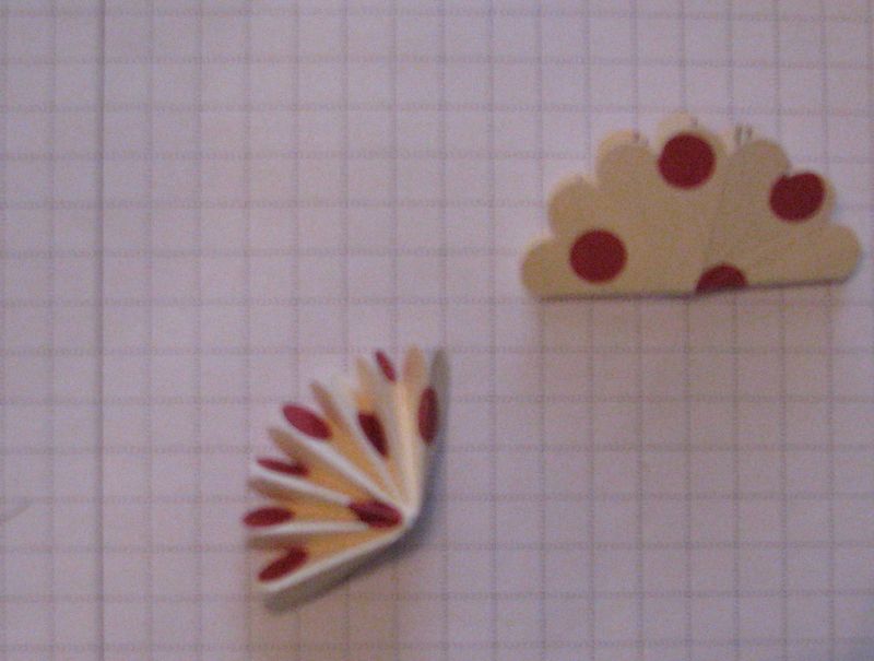 To top off my matchbox, I used the Scallop Circle Punch #119854 to punch two scallops in the same pattern. Fold each scallop in half, making sure that you aren't folding any scallops on the ends in half…..you want to just fold in the lines between the scallops. Fold in half, open, fold in half in another spot. I found that if you just go around the circle to each scallop you will probably get them all and get them folded correctly. After you have made all the folds (so that it looks like spokes on a wheel), take your Paper Snips #103579 and cut on just one of those lines into the center.