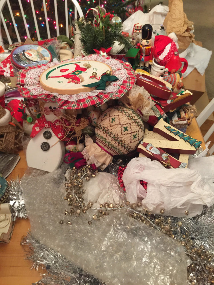 No stamping for me until I get these unpacked Christmas decorations hung on the tree or placed somewhere around the house! I have way too many but most have memories attached! In my wildest dreams I’d like to make some scrapbook pages about my Christmas decorations! Someday!