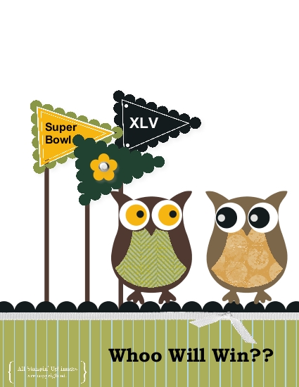 Another fun and easy creation with My Digital Studio! I just started with a design already included in the program, changed the pennant colors, added text, added the owl punches, changed the scallop color to black, deleted the greeting and added my own text box. With a little research, I was able to find out the color codes for the Steelers and the Packers and used those in a couple places because you can select any colors you want with My Digital Studio.