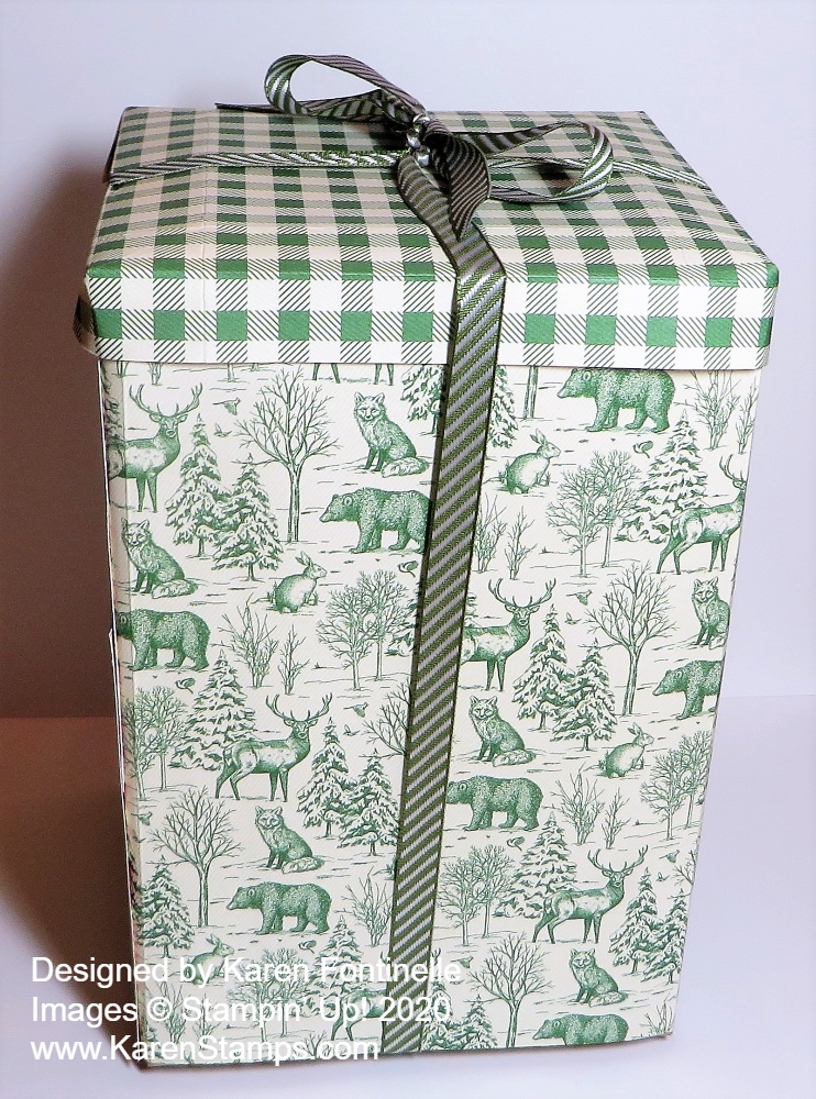 Even if you had a small Amazon or other shipping box, you could use this same idea to cut out pieces of cardstock and/or designer paper to cover the sides of the box and personalize it! Just have fun with it! Time to wrap those gifts!!