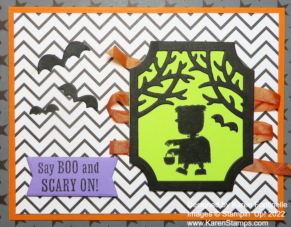 I used a Pumpkin Pie cardstock card base for this card to go with the plaid pattern in the Them Bones Designer Series Paper. Sometimes we overlook the generic patterns in a themed designer paper package that can be used in many other ways.