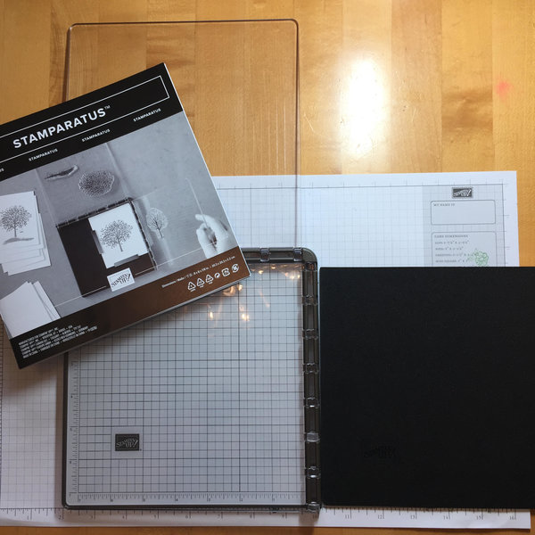The Stampin’ Up! Stamparatus has a lot of features that I don’t think others on the market have. If you mess up and your image doesn’t stamp as well as you want, just reink and stamp again because the paper hasn’t moved. Use one of the magnets to hold your paper in place. Just be careful not to get those two magnets anywhere near each other!! I found that out the first time I used my Stamparatus!