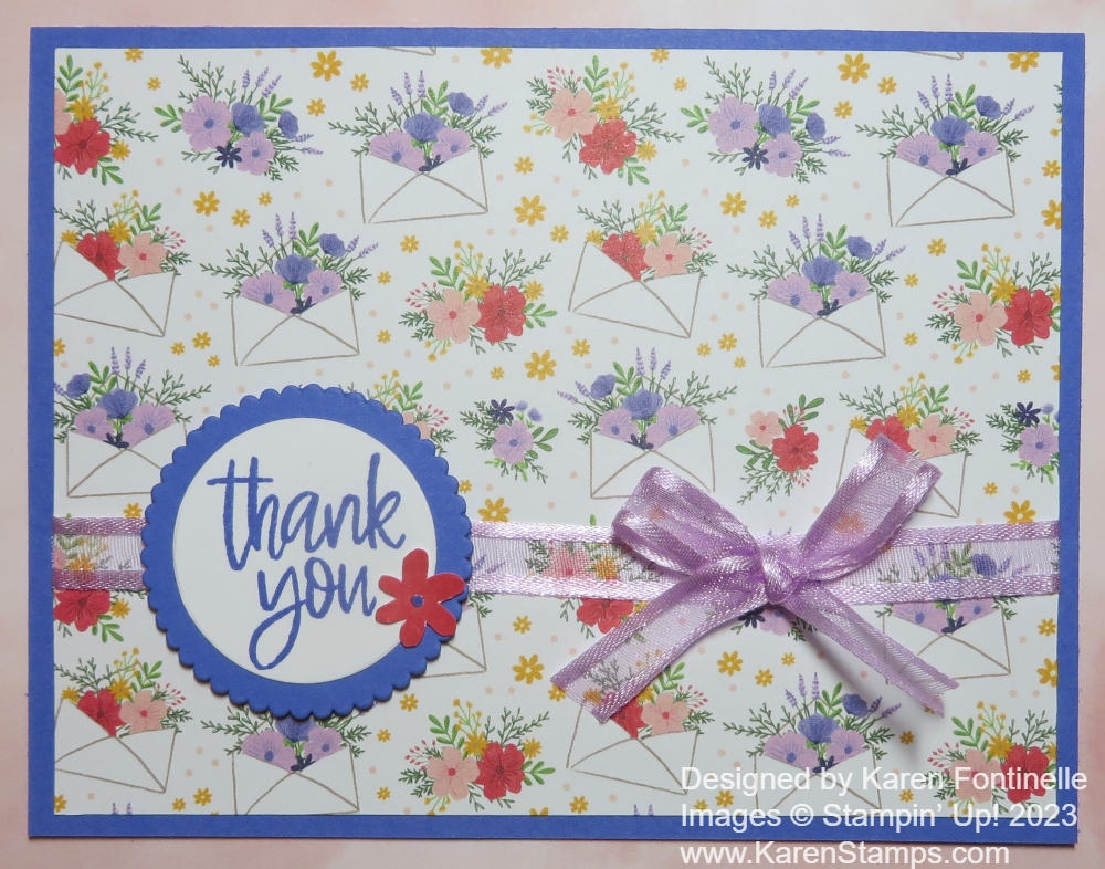 I almost forgot I hadn’t posted this Tea Boutique Orchid Oasis Thank You Card yet, but here it is, just in the nick of time! On Monday, May 1, the Stampin’ Up! Annual Catalog and many of its great products will retire. I hate seeing many of them leave, but we always say that until the new products go live!