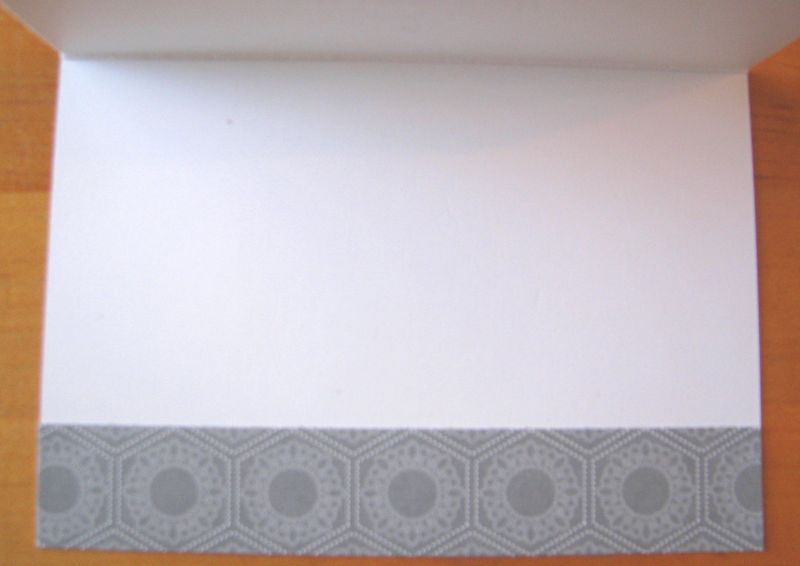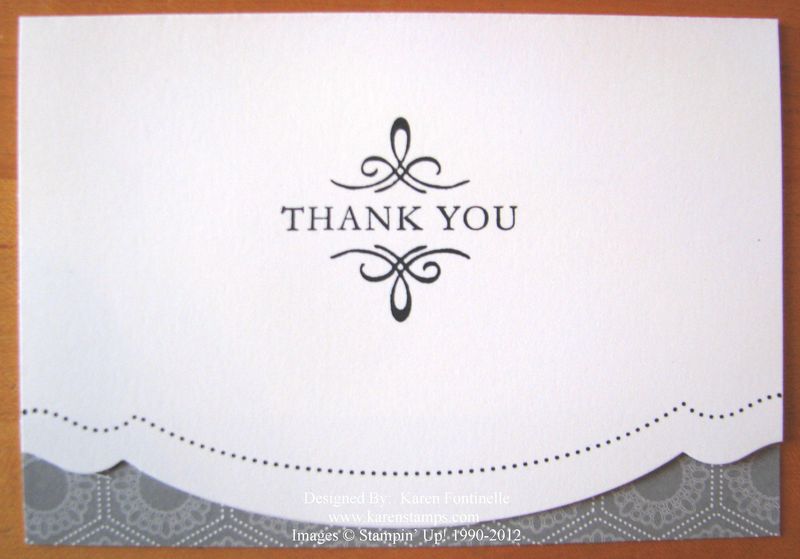 Plenty of room on the inside to write a nice note to the gift-giver! Or if you don't want to do the fancy edge, you could paste the paper on the front flap of the card. Then stamp a "thank you" on the front….or a monogram with one of the Stampin' Up! alphabet sets!