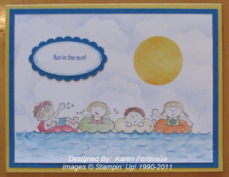 I stamped the image of the kids swimming and colored in with my Watercolor Crayons and Aquapainter. I love using my Watercolor Crayons!