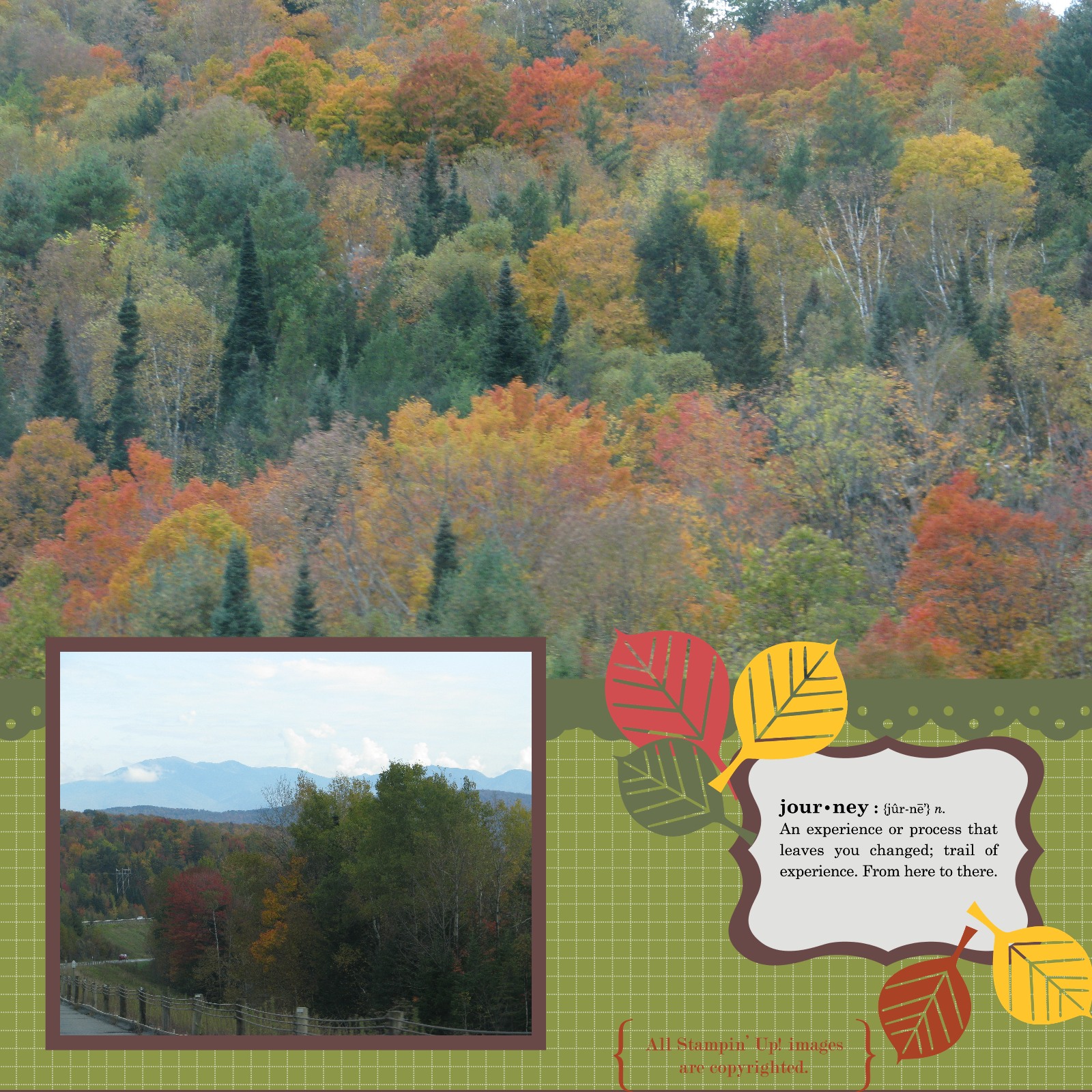 So to get myself in the fall mood, I decided to do another digital scrapbook page from our trip to New England last fall. These colored leaves and gorgeous scenery sure say fall to me!