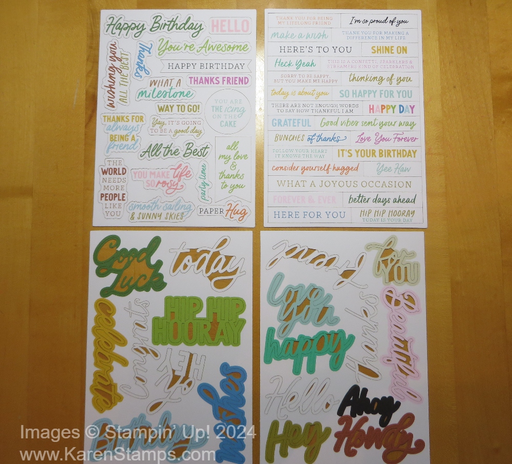 This is the Saying Something Ephemera Pack. You get two of the same sheets. There are three other ephemera packs to choose from! Great for scrapbooking but also for making easy cards!