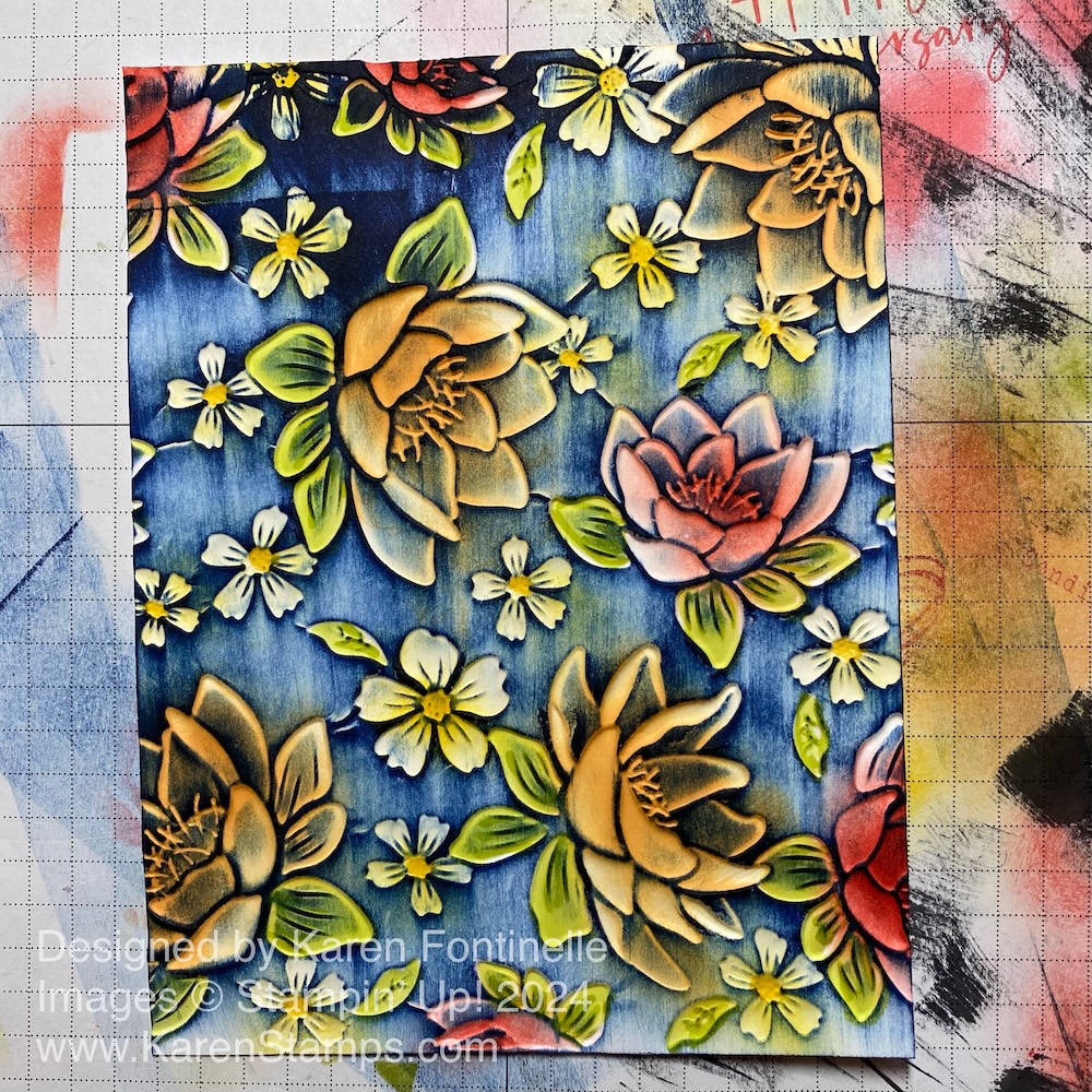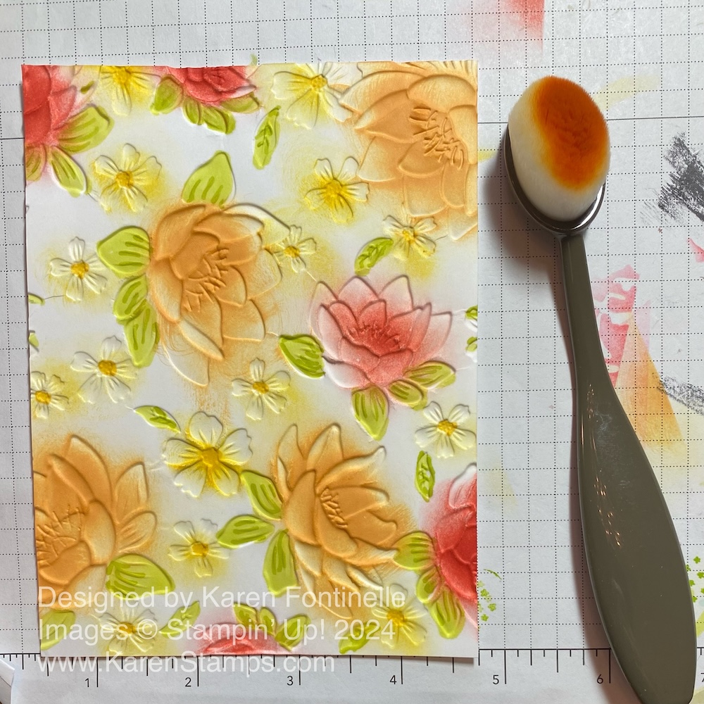 I know you will want to try this technique! If you don’t have this exact embossing folder, see what you do have or just try any one you have and see what you can do with it! If you don’t have large images like these flowers, maybe using Blending Brushes or Sponge Daubers to apply the color. Remember to do it on the debossed side of the embossed cardstock.
