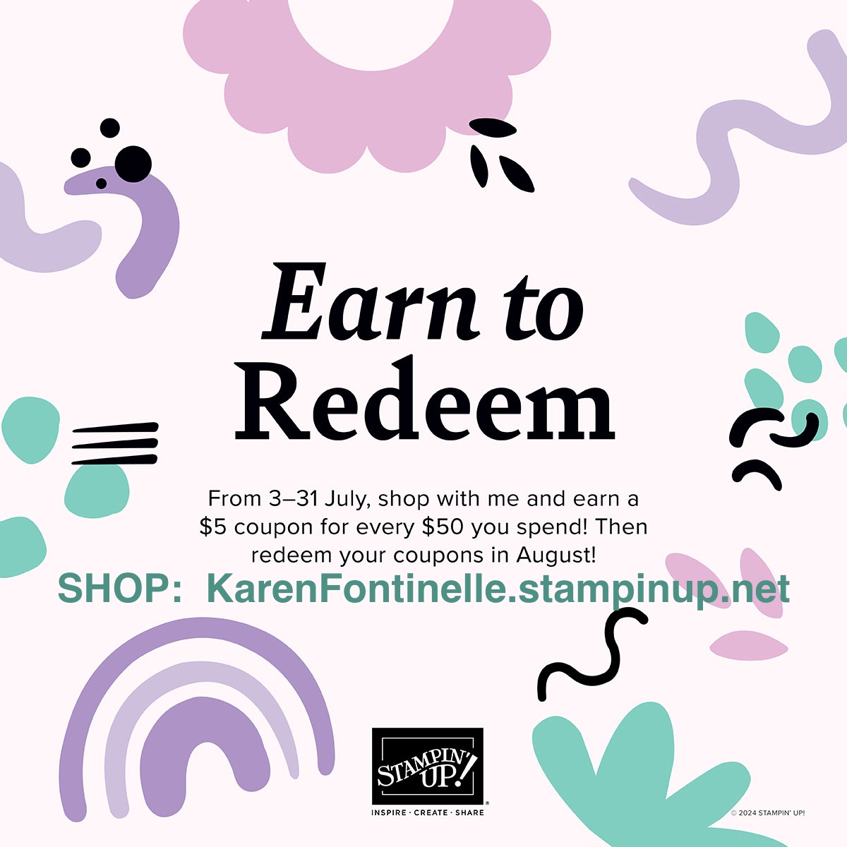 All coupon codes will be emailed directly from Stampin’ Up! right after a qualifying purchase has been made. Make sure your email in your account is current.
