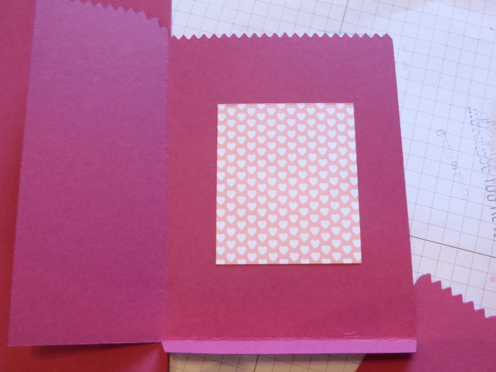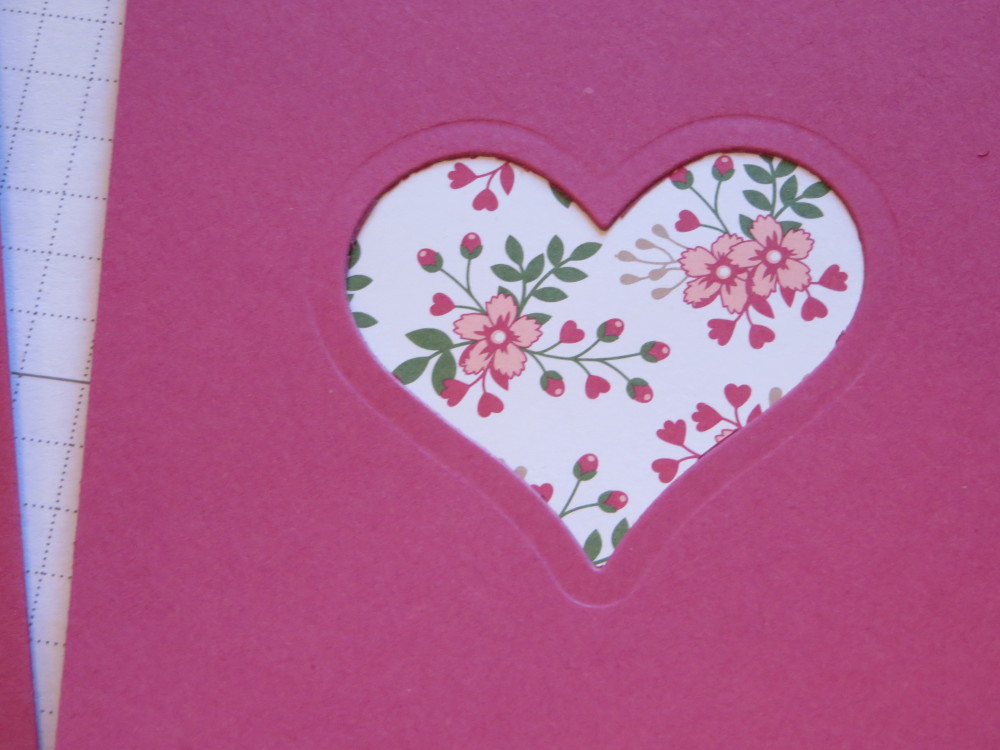 My Mini Treat Bag I made with Rose Red card stock because it coordinates with the Love Blossoms Designer Paper Stack that I used inside the heart window. I used the heart die to cut that window and then just adhered a piece of the Love Blossoms paper on the inside before I glued the bag.