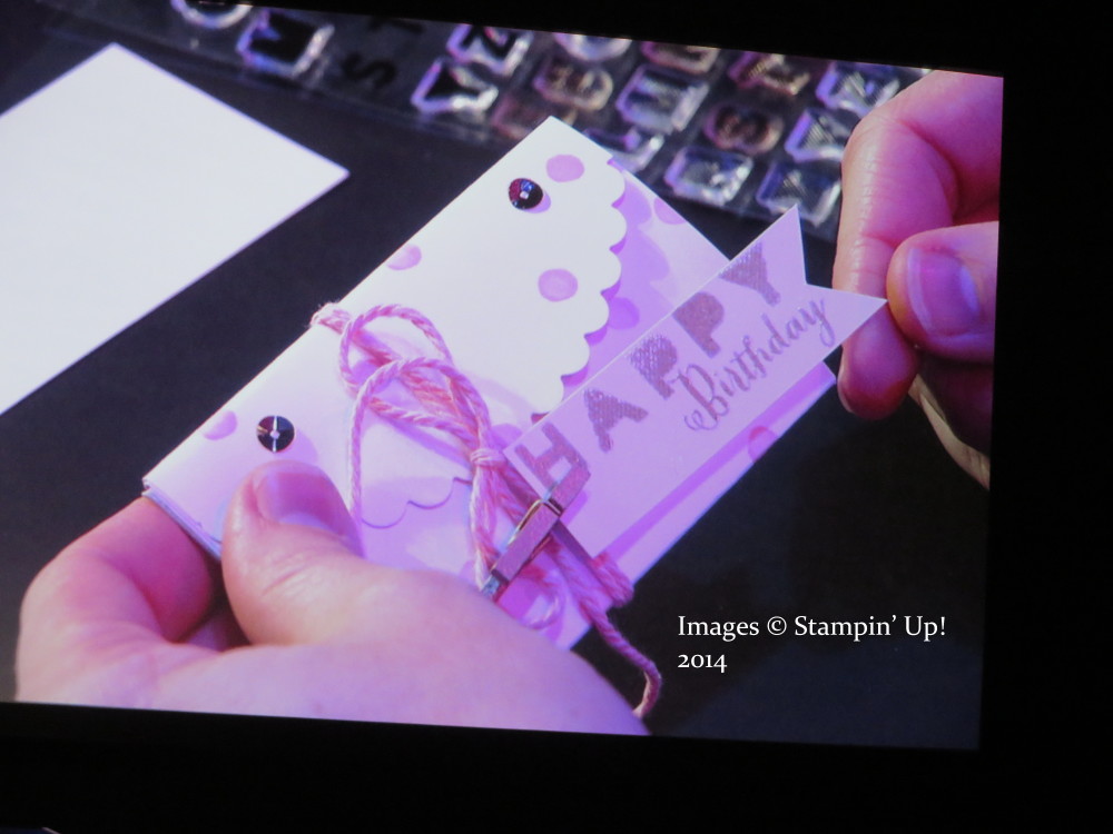At the Stampin’ Up! Leadership Conference, Sara Douglass introduced us to a new upcoming photopolymer stamp set called Sans and Stripes. And now it is available for purchase! If you are looking for a new, trendy alphabet stamp set, maybe this one will appeal to you! Here are some of the samples Sara made and shared in her presentation (and we always love her stamping presentations on stage!):
