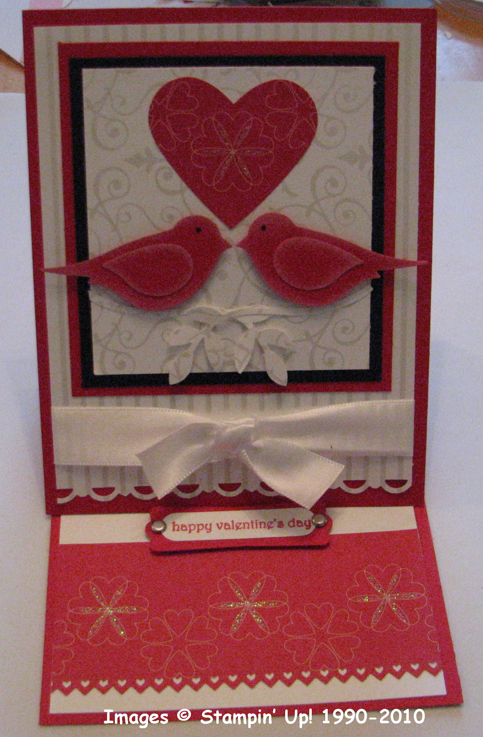 It may be past Valentine's Day, but really you could use this card for other special occasions, like an engagement or wedding….or just extra-special card. It is called an Easel Card because while it folds flat like any card, it can be propped up as if it were on an easel for display. And what a great idea to be able to display your handmade card!