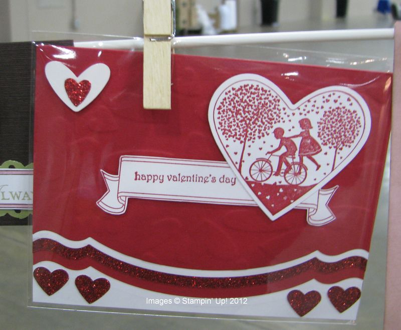 Here are some valentine ideas from Stampin' Up! Leadership last month. These are samples on display made mostly by other demonstrators and some Stampin' Up! samples. Enjoy…..and then go make someone a valentine!
