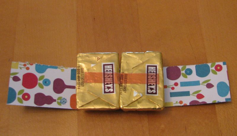 Here you can see the two chocolate nuggets forming the body (stuck together with one mini glue dot near the bottom of the candy and some Sticky Strip on the back.