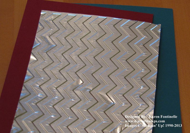 Of course I copied the idea from a couple I saw online a long time ago and then made them up my own way. On two, I embossed aluminum foil (the heavy duty kitchen kind) in an embossing folder in the Big Shot.