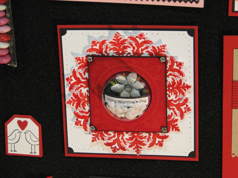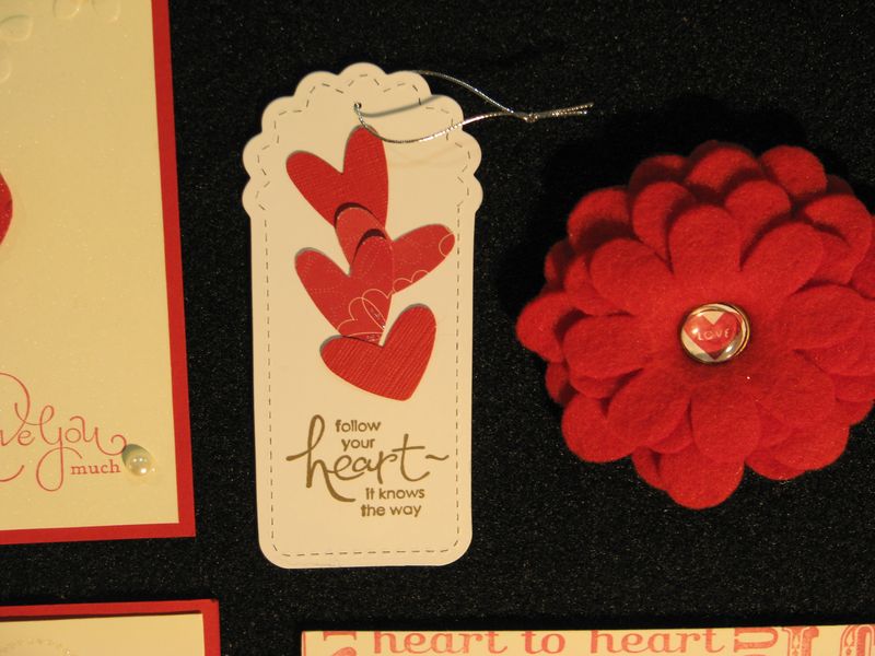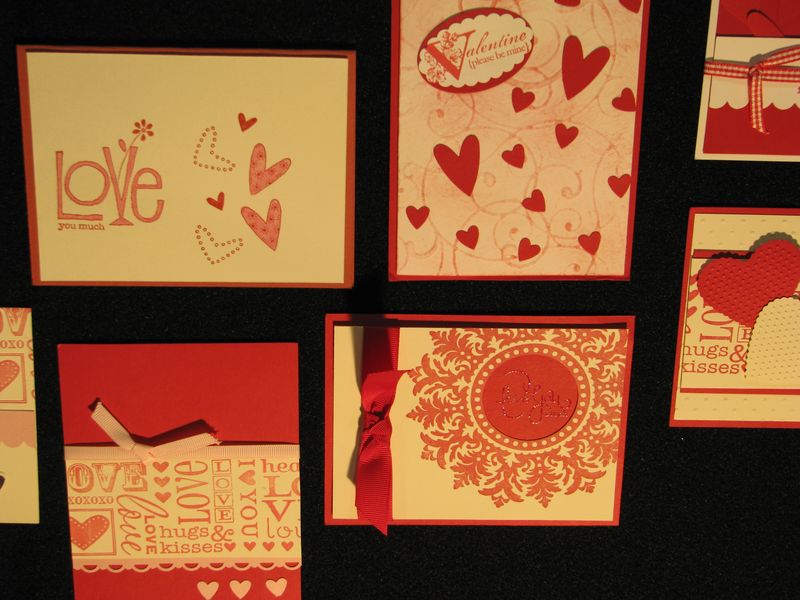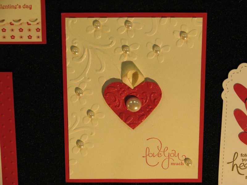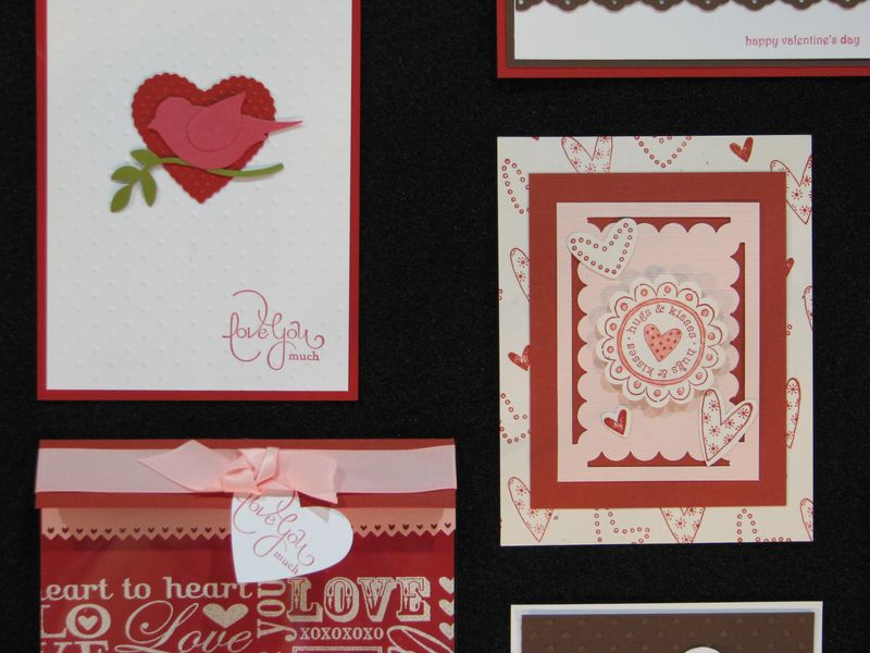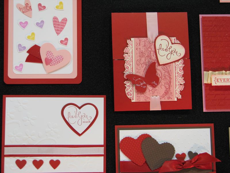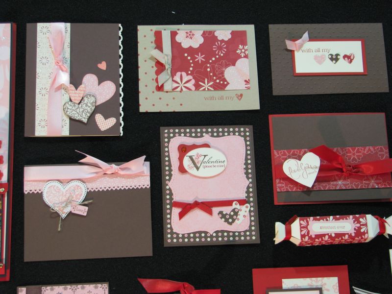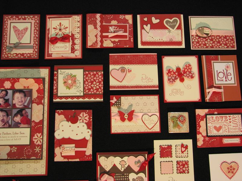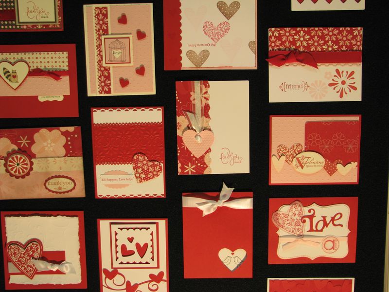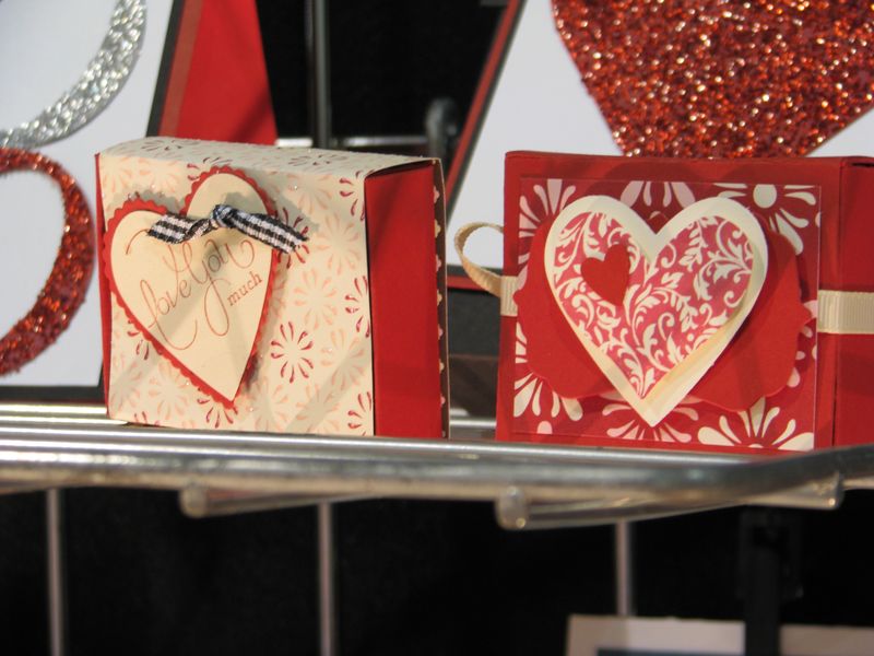 While I am still waiting to get my furniture all moved back now that the Christmas tree is down so that I can stamp a little easier, I thought I would share some photos from the Stampin' Up! Convention displays last July. I've told you before that every single thing about a Stampin' Up! Convention is fun, but if I were only allowed to look at the display boards there, even if I never got to stamp a thing, I would be in heaven! I love all the ideas!! Here are some of the ideas for Valentine's Day cards and scrapbook pages and projects that I'm sure you will enjoy!