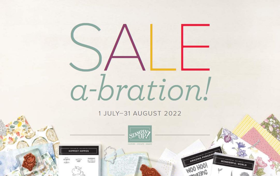 We are already three weeks into Stampin’ Up! Sale-A-Bration 2022, the second one of the year! Sale-A-Bration is probably the oldest promotion Stampin’ Up! has, continually improving since the beginning when there were less choices than we have now! Sale-A-Bration is an opportunity to earn FREE products in the Sale-A-Bration brochure with every $50 purchase (before shipping and tax). No limits! With every increment of $50 on your order, you can choose a free product. You can choose a few special ones with a $100 order instead of two $50 level ones. With a $150 order, you also earn Stampin’ Rewards starting at 10% PLUS Sale-A-Bration products! With a $300 order, you receive the Perfect Pomegranate Stamp Set FREE.