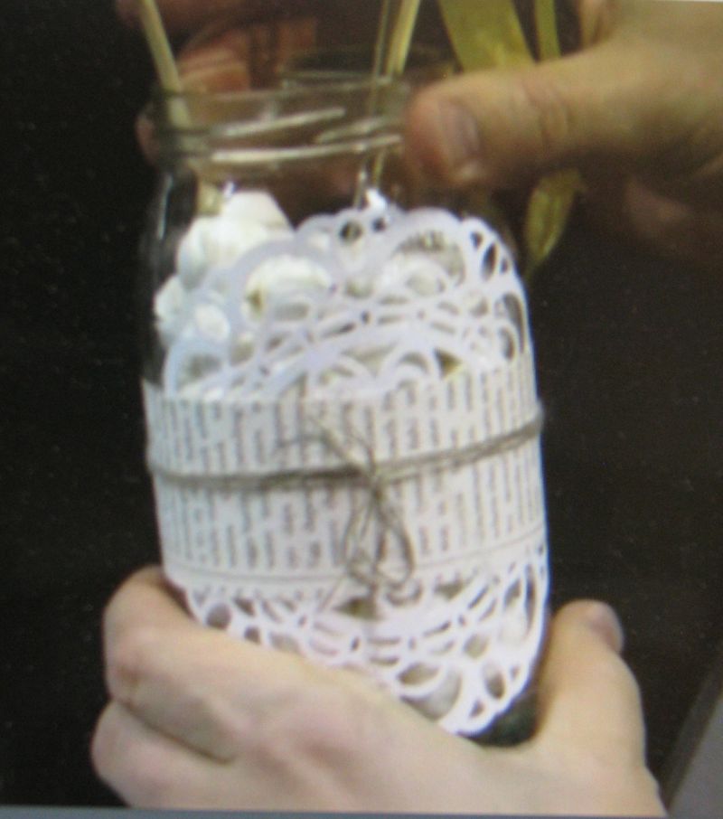 And here's another creative idea…this time the jar is filled with something (mints?) to hold skewers attached to decorations or flowers or whatever you would want to make…just like a vase.