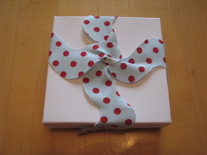 I just gave myself another idea as I wrote the title….but we'll stick with my original idea first! After seeing wrapped packages at Convention with fabric trim, I decided to try my own sample. Stampin' Up! at one time sold a roll of plain white heavyweight wrapping paper and it was great! They also sold a striped and polka dot wrapping paper, also great. So if you ever see Stampin' Up! selling wrapping paper again, grab some because it is good quality! I think it is useful to have plain white wrapping paper on hand because you can stamp on it or decorate with ribbons and trim anyway you want, and then you don't have to have multiple rolls of wrapping paper taking up space for every occasion. And now with the new Stampin' Up! fabric, you can add an additional trim to your arsenal…..or even wrap the whole box in a piece of fabric (which is what I thought of as I was writing the title!)…..by using fabric.